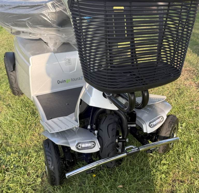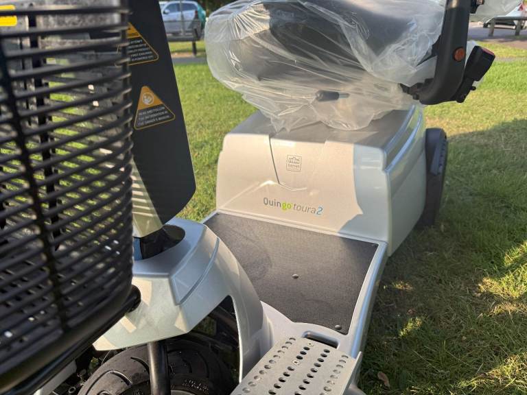 Quingo Toura 2. Just 17 Miles on The Clock. Reversing Camera, LED Dayglow Running Lights, Kerb Master, Smart Bumper Protection System, 650 Watt 4 Bush Motor, EZ View Digital Dash, Adaptive Foot Plates, Quintell 5 Wheel Steering System with ****All New Steering Stability Control Sensor**** Seat Position Sensor. Plus Loads more Features. The scooter will be Fully Serviced Before Delivery/Collection. Please make sure you will be able to cope with a Big and Powerful Mobility Scooter. 55 Mile Range *approx*, Max user is Stone. 35 Stone (220kg) 1 years Triple Star Warranty is inc, Triple Star Recovery, and Triple Star Insurance is also Inc. For Complete Peace of Mind.