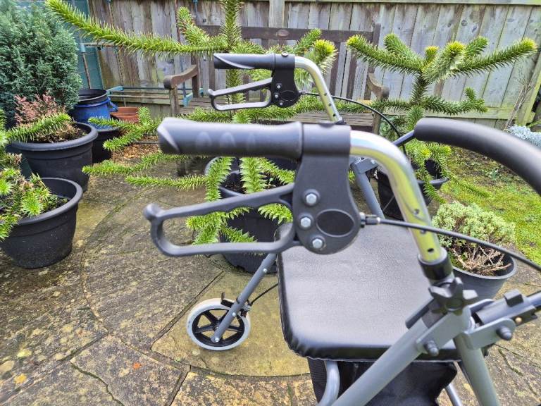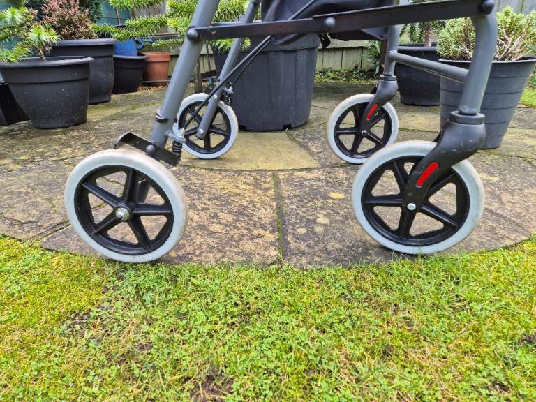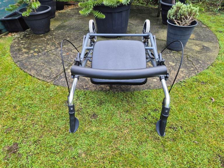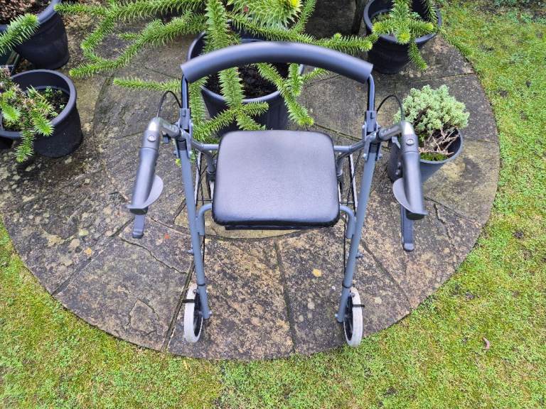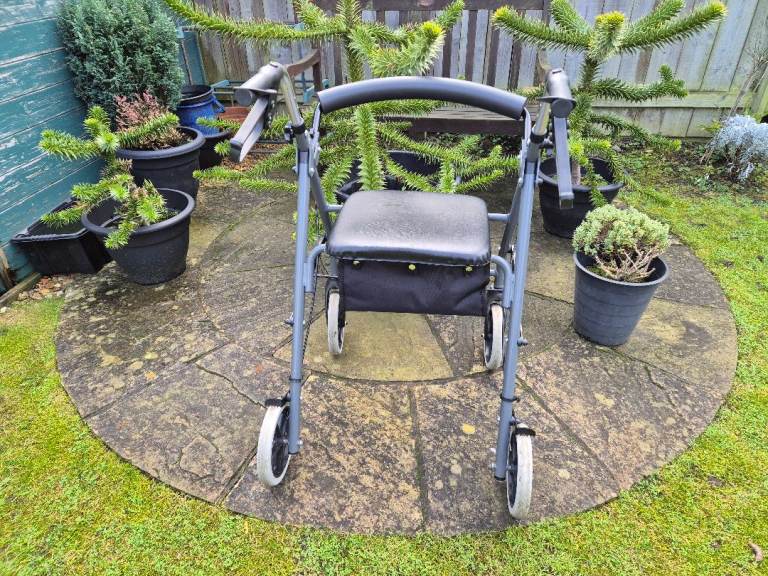For Sale - Grey Rollator stroller walking aid in excellent condition as was mainly used inside the home. It's made from lightweight aluminium weighing a mere 7 kg's and it folds up for storage and transportation. The wheels are 8 inch with solid tyres so it's suitable for both indoor and outdoor use. It has a seat, brakes, foam back rest and under seat bag. It has an 18stone/115 kg weight limit and is height adjustable. Expensive new. Comes from a pet and smoke free home. Possible local delivery. Please call me. (No Texts please). 0️⃣7️⃣7️⃣5️⃣6️⃣2️⃣7️⃣2️⃣9️⃣0️⃣1️⃣