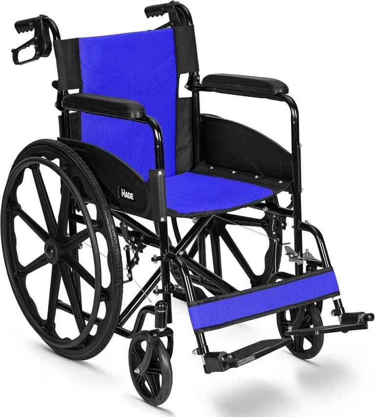Combines wheelchair and walker. Sturdy, ergonomic with stylish modern design and color. Transforms from walker to wheelchair in seconds. Folds easily to put in boot. Adjustable features. removable foot rests. Net underneath seat to store items and large back pocket to store footrests when not needed.