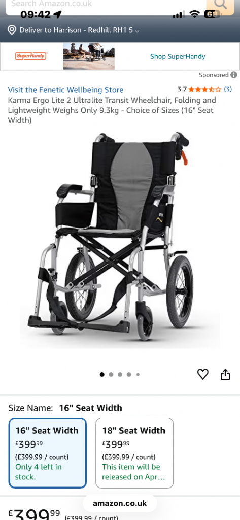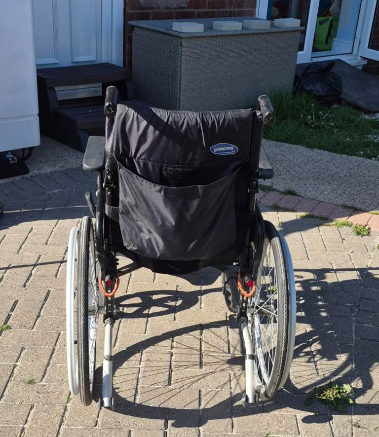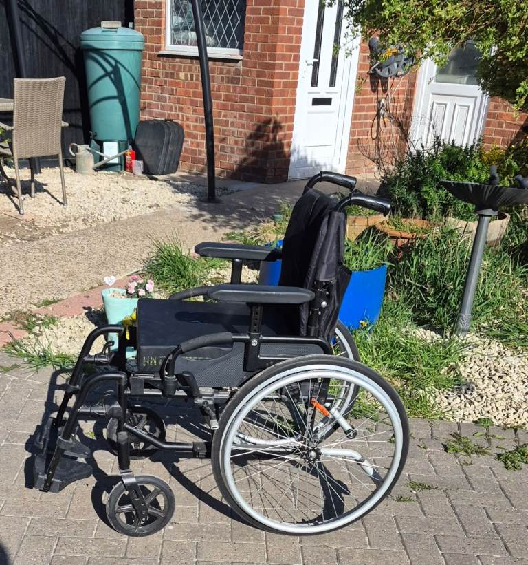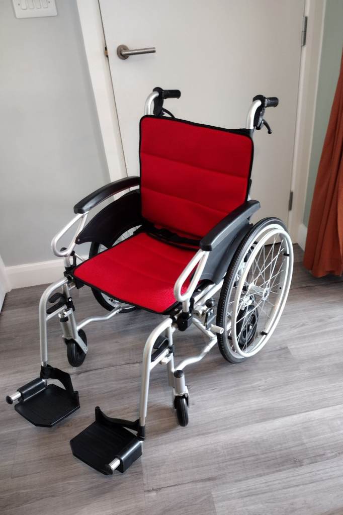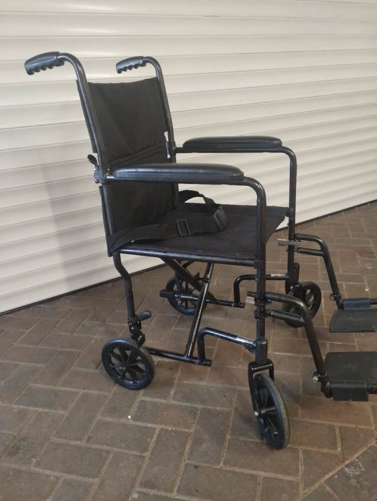 Lightweight, easily foldable for storage, Sturdy, Reliable wheelchair. Padded armrests. Removable padded seat