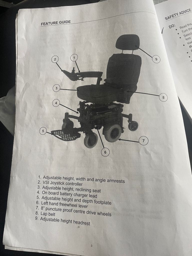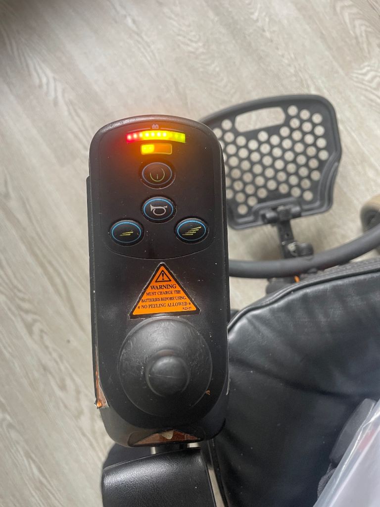 This was my father’s wheelchair, it is in very good condition, battery charges and works perfectly and it has a range of about 15 miles on one charge