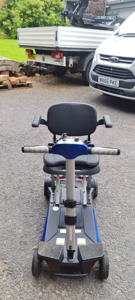 solax Blue Lightweight Folding Lithium Mobility Scooter is a portable travel scooter from the Solax MoBifree brand. This electric/battery-powered scooter has a maximum load capacity of 130 kg and features four wheels for stability. With a sleek design and a manufacturer warranty of one year, this mobility scooter is perfect for short trips and on-the-go convenience. Its lightweight construction, compact size when folded, and high speed of up to 4 MPH make it ideal for individuals looking for a reliable and convenient mode of transport. SEE VIDEOS ON YOUTUBE BRILLIANT LITTLE SCOOTER. JUST BEEN UNBOXED AND CHARGED REEDY FOR USE. Any questions message Me.