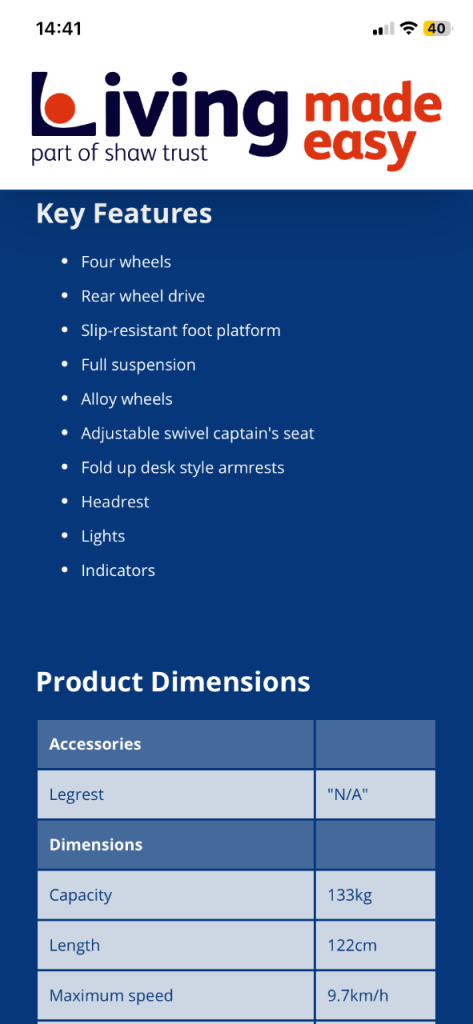 Sterling Emerald mobility scooter good condition