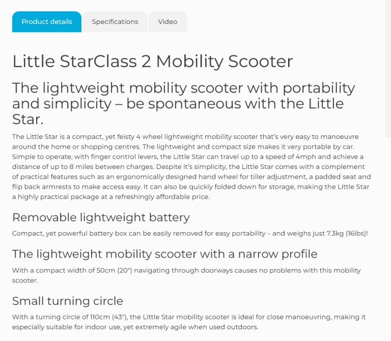 Sterling Little Star Mobility Scooter