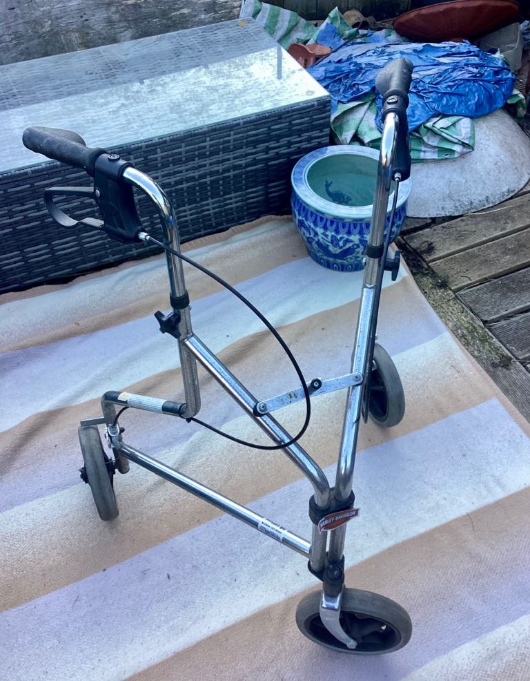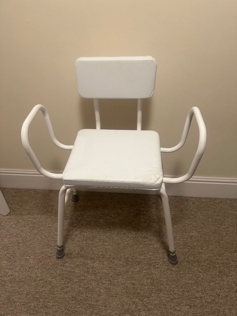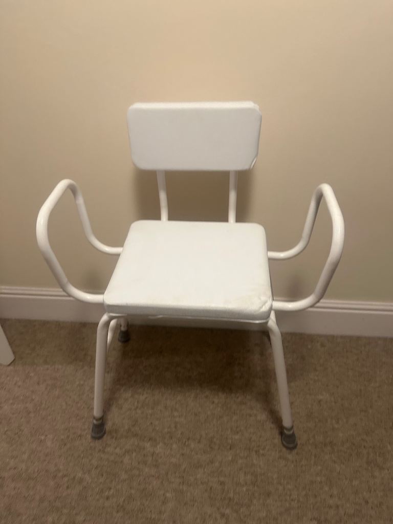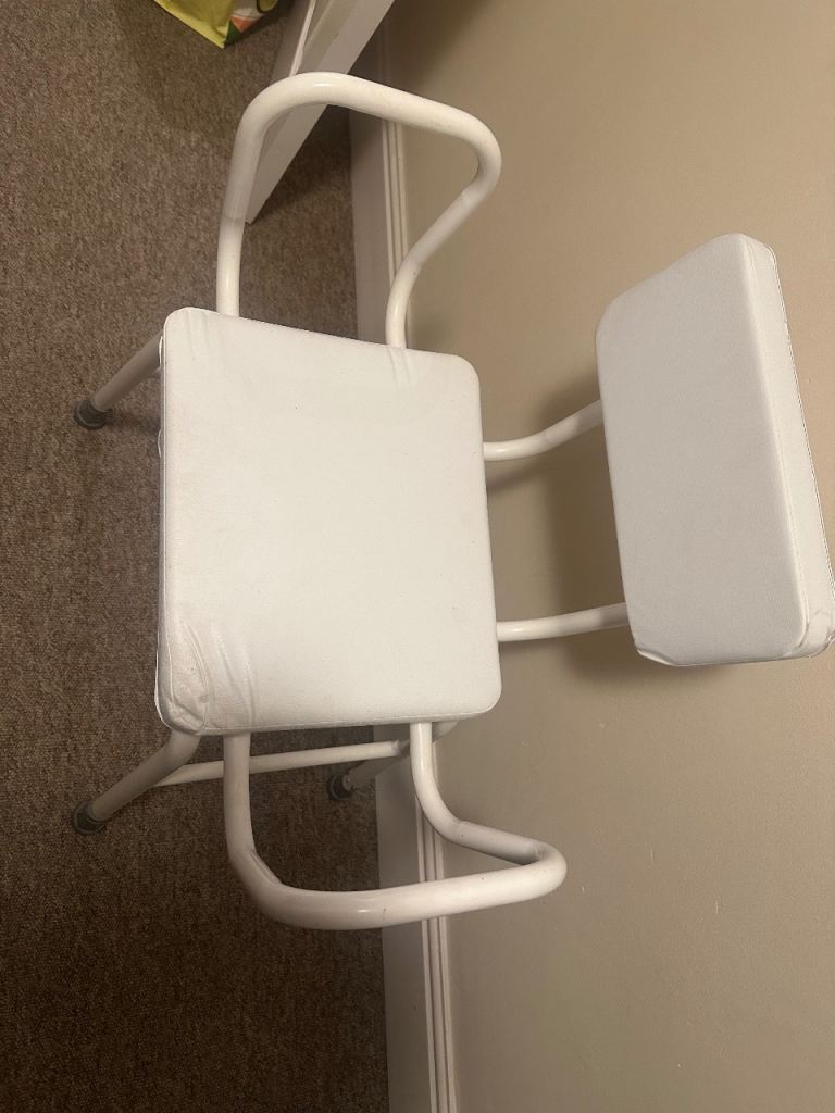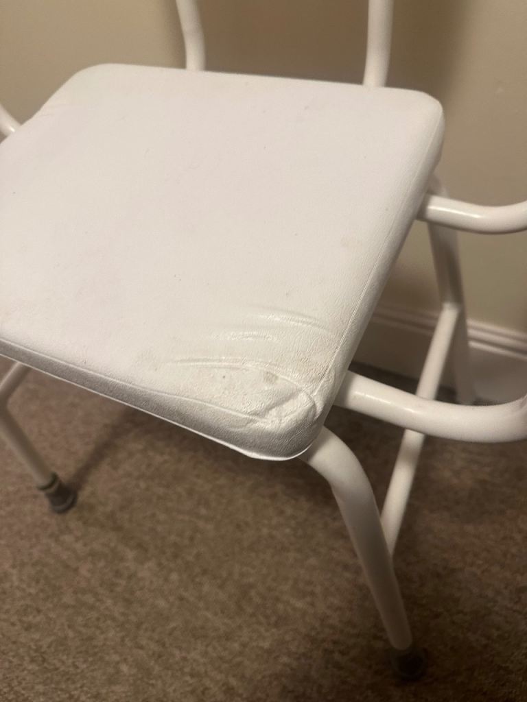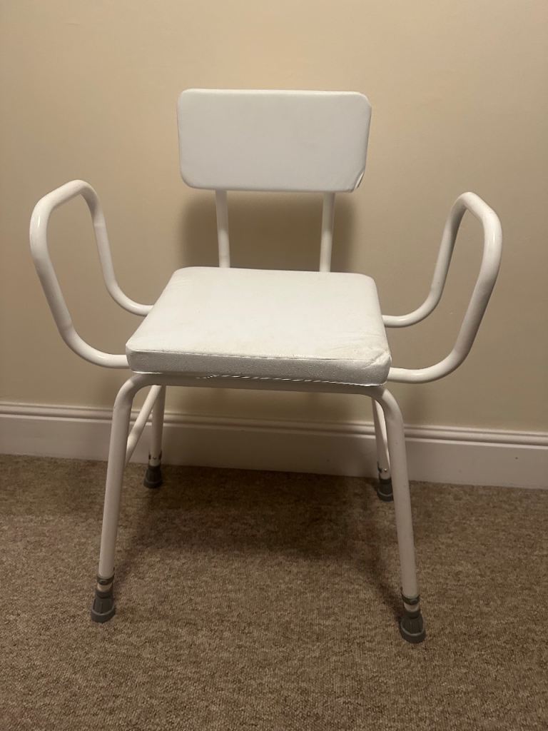 A tilting chair to help disabled and elderly people in the kitchen by providing a steady seat that’s at a angle so they can still reach the work top, adjustable height, a small scuff on corner as seen in photos but that’s just from storage, collection Fakenham