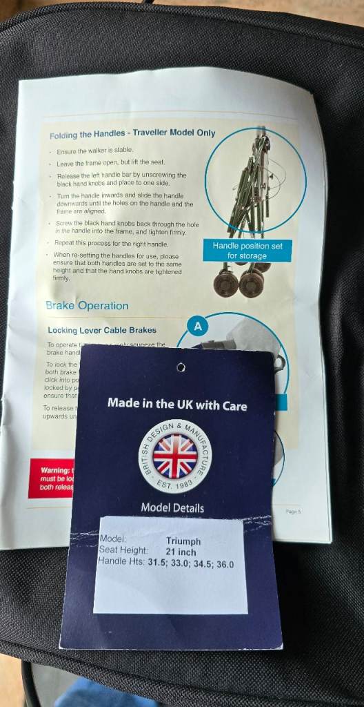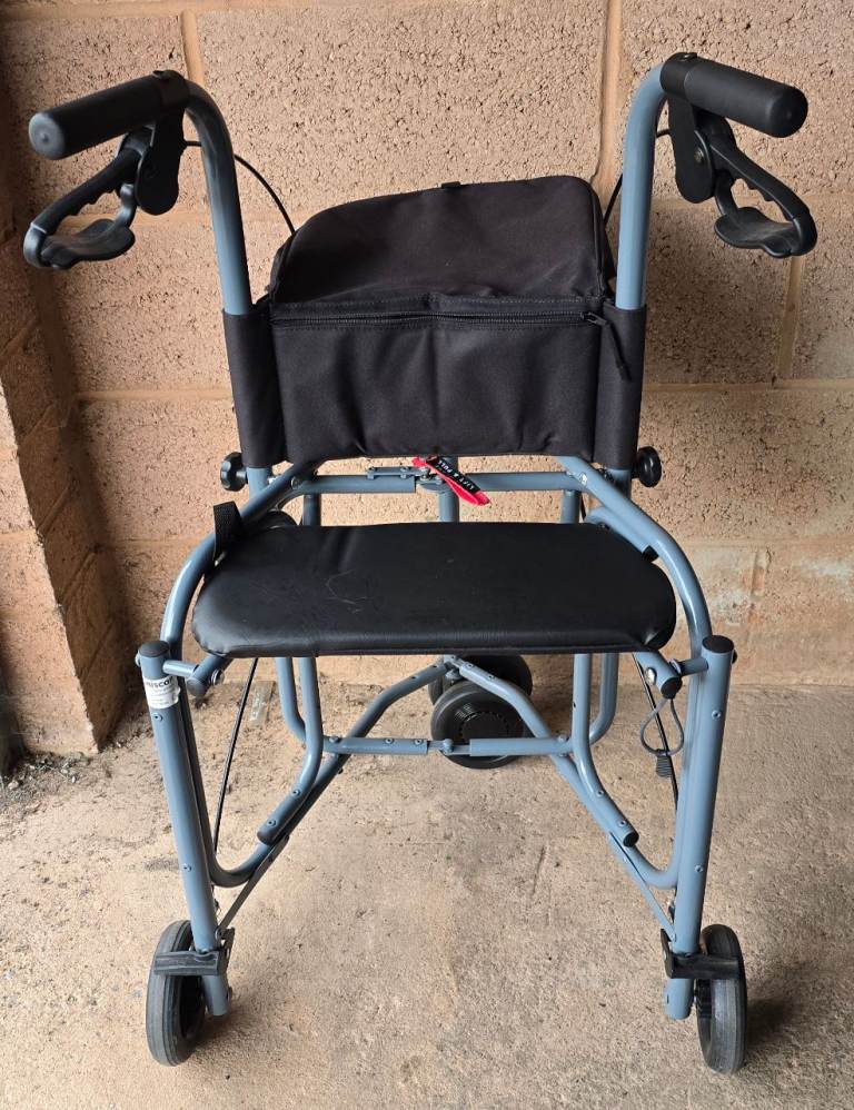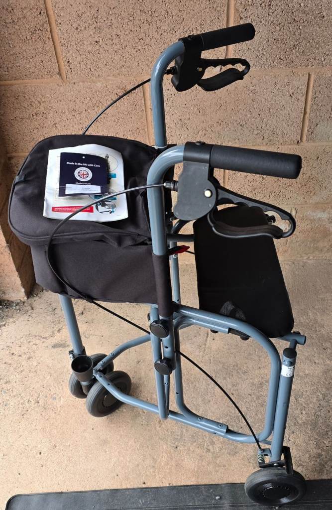 Despite its lightweight design, the Triumph 3-Wheel Rollator still includes an attached walking stick holder and a under seat caddy with a cover that clip over. This makes it ideal for trips to the shop or longer days out.
