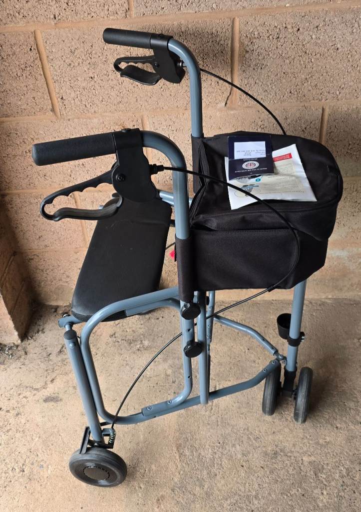 Posting for 8+ yearsUNISCAN TRIUMPH 3 WHEEL WALKER WITH LEVER BRAKE WALKING AID 21 INCH GREY