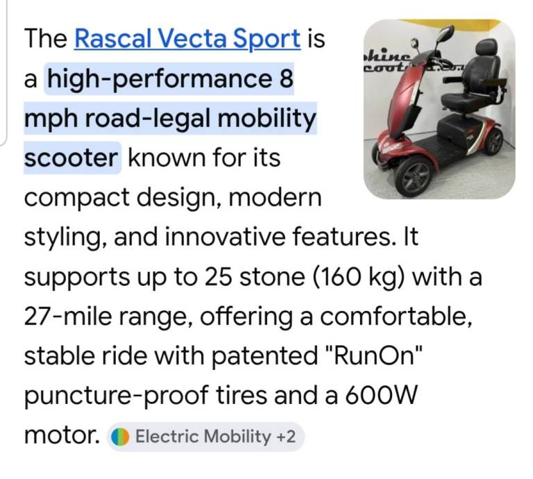 Posting for under a monthVecta Sport Rascal Mobility Scooter