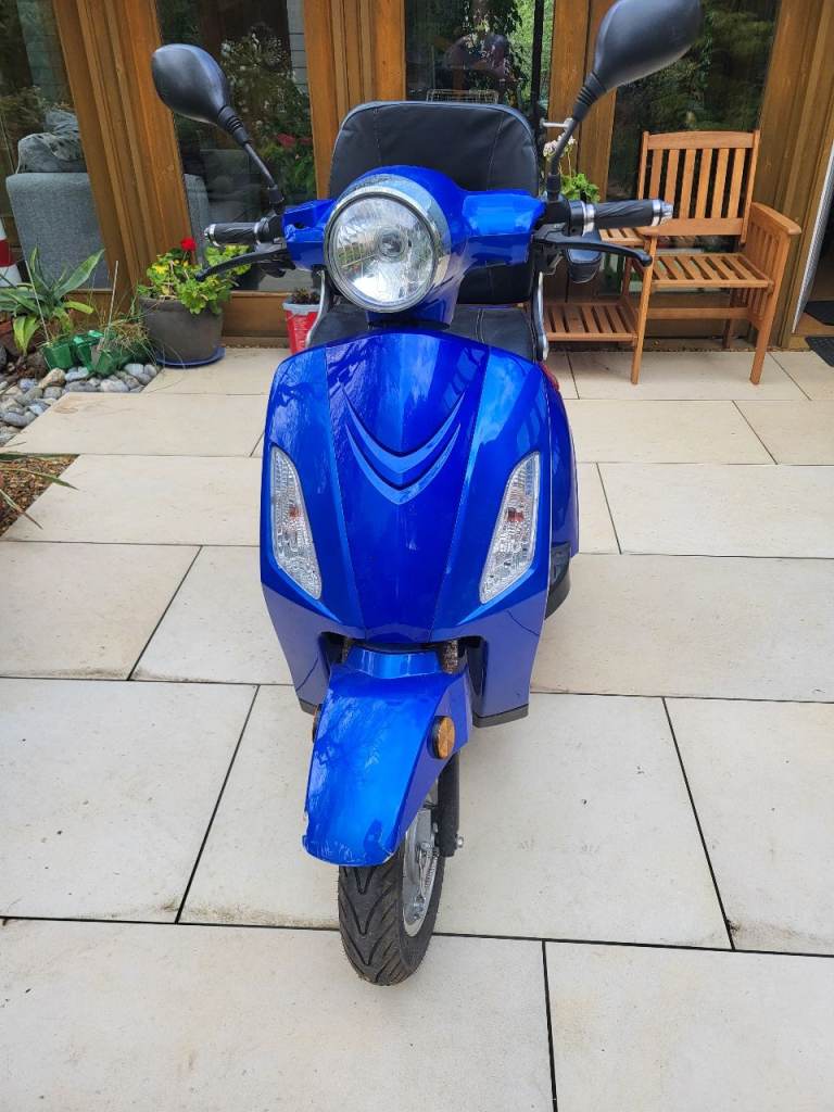 Blue, 3 wheel mobility bike/scooter for road use.