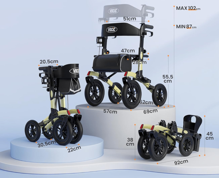 VOCIC All Terrain (Outdoors and Indoors) Rollator, Foldable with Seat and Large Wheels.