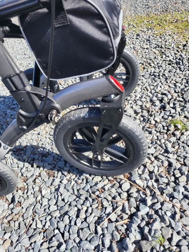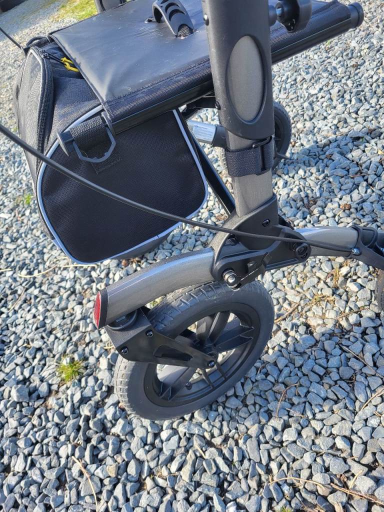 * Specially thickened grey alu frame, 30% stronger, resulting in better rollator stability and less flex on tough terrain.
