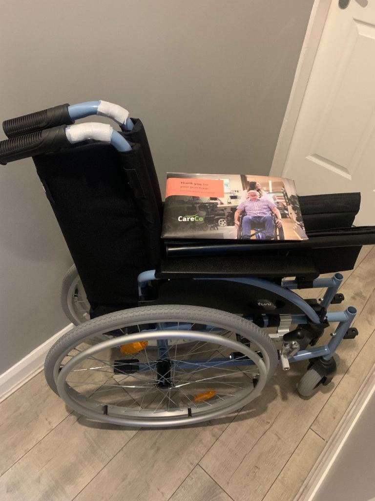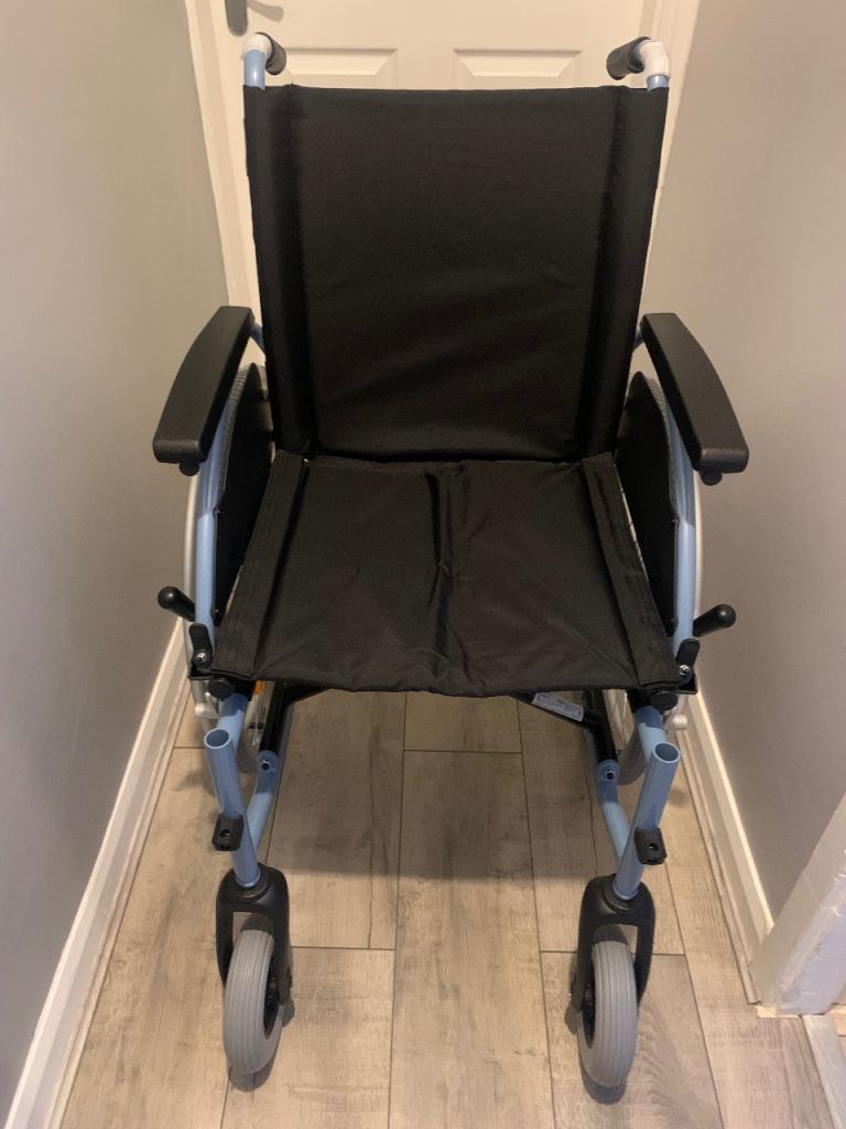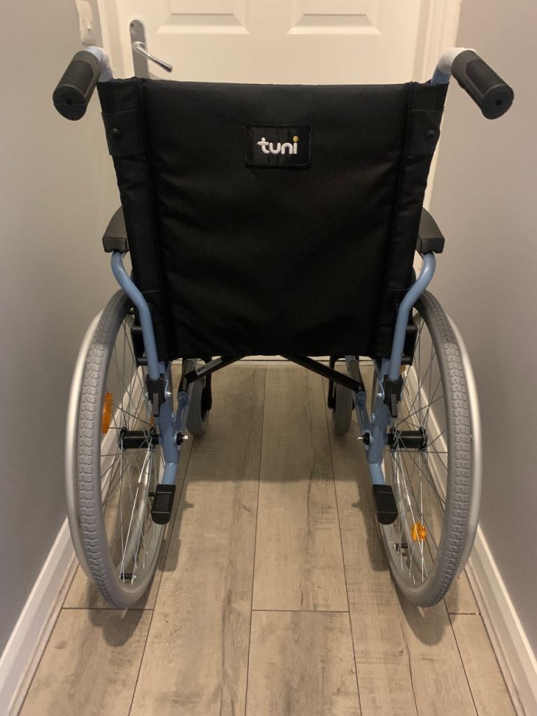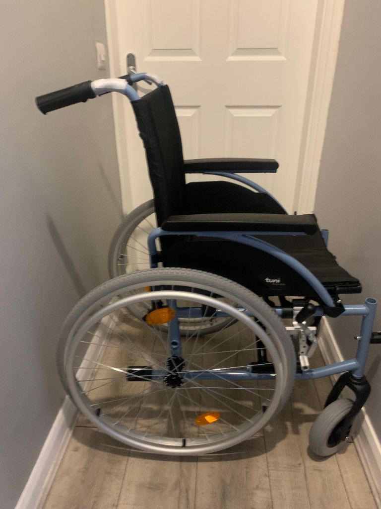 Tuni vision self propelled wheel chair has 24inch all terrain wheels 17 kg carry weight max user weight is 21 stone 3lbs all boxed only used in house a couple of times not needed anymore cost over £200