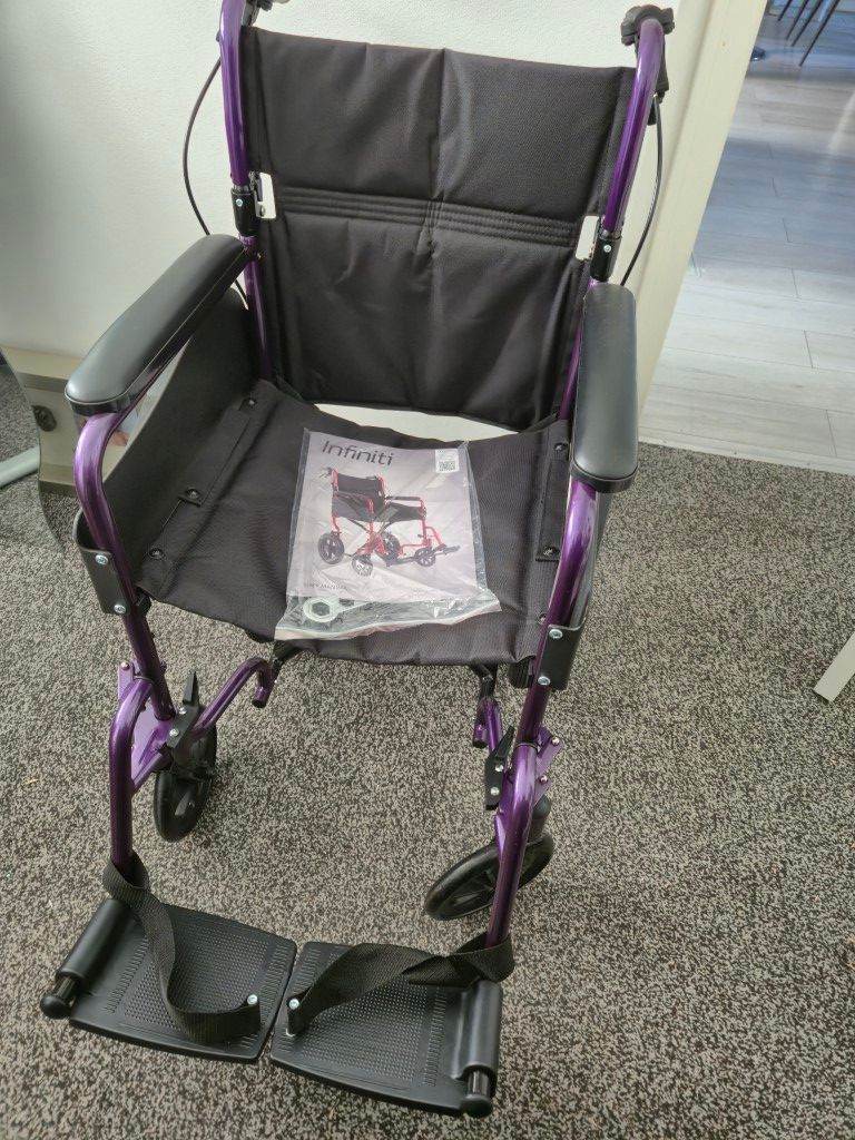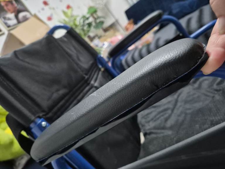 Please note: there is a small crack underneath one handle caused during delivery. This is purely cosmetic and does not affect the wheelchair’s functionality, safety, or performance in any way.