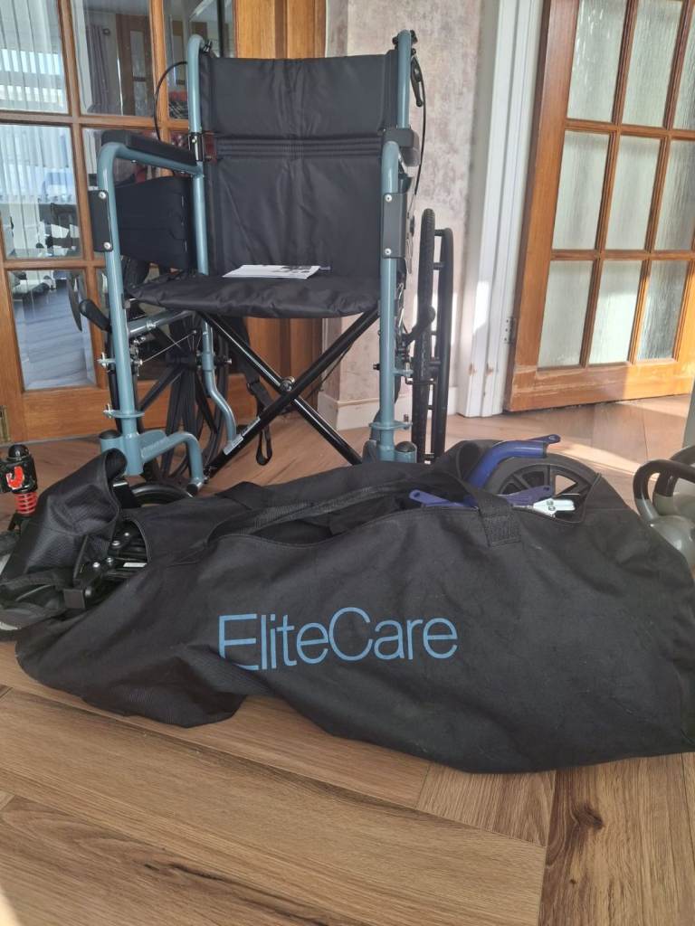 Manual wheelchair excellent condition used once on short trip from car to home property folds flat for transport also have a an elite care portable wheelchair available 100 for each chair can do a deal for both if interested pics of second chair will follow happy to answer any queries you may have thanks