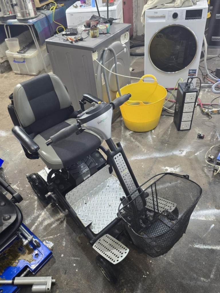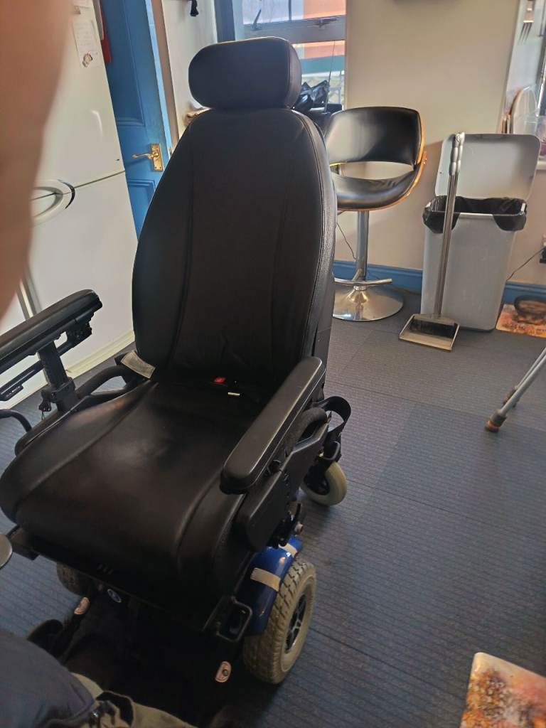 Battery operated wheelchair in good condition but very very heavy so we're required to people to take it away many thanks Steve just two big four by room