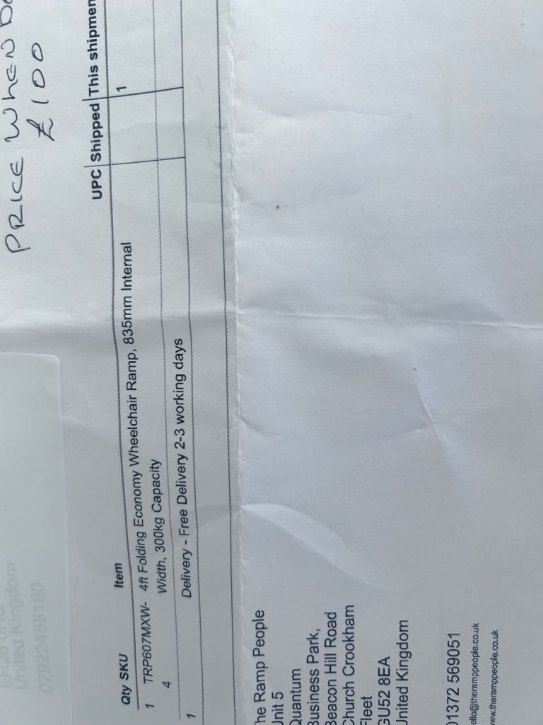 Wheelchair ramp ( size described in photo - used twice so like new - cost £100 but will sell for £45