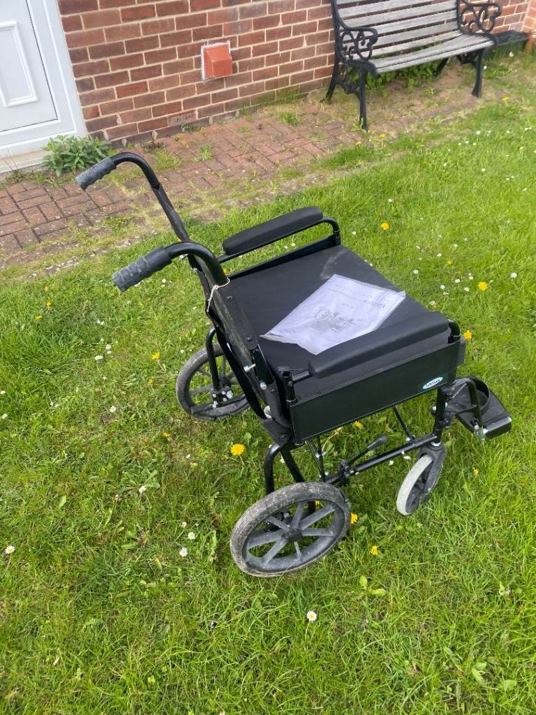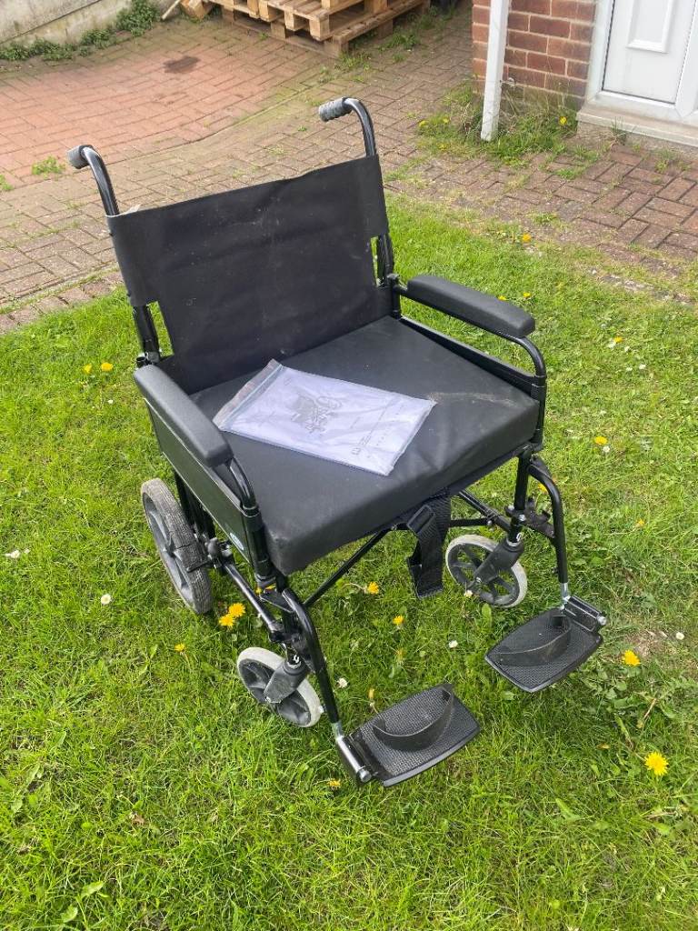Wheelchair. 133kg Working Load, Drop Down Handle Bars. Seat Cushion
