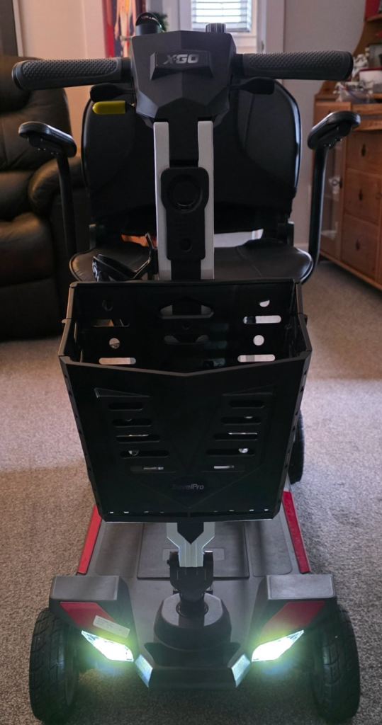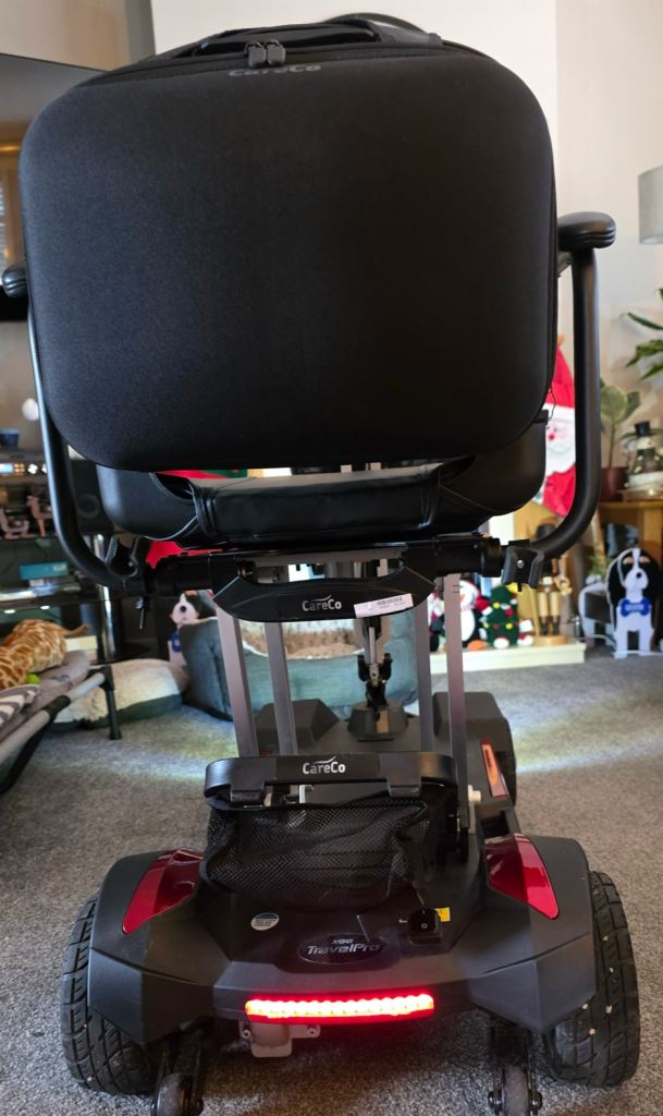 XGOPro mobility scooter. Bought new £3000. Comes with 1 x 18 mile battery and 2 x Spare 9 mile batteries which are airplane friendly with carry bags for both. Has a bag for back of seat and basket for the front. There is also Carry bags for scooter and seat. Folding scooter fits in car boot easily. Opened to sensible offers.