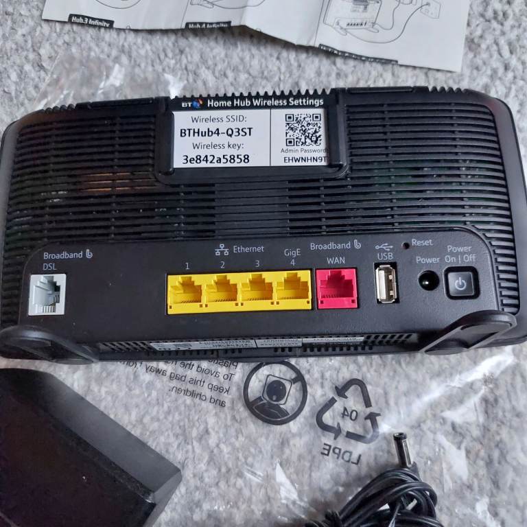 BT Home Hub 5 Type A DSL Modem Router Black Wireless Dual-Band 4-Ethernet Ports.