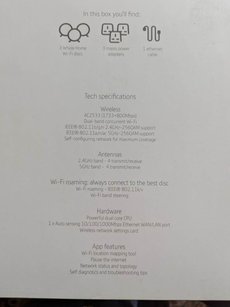 BT whole home 3 disc WiFi mesh system AC2500