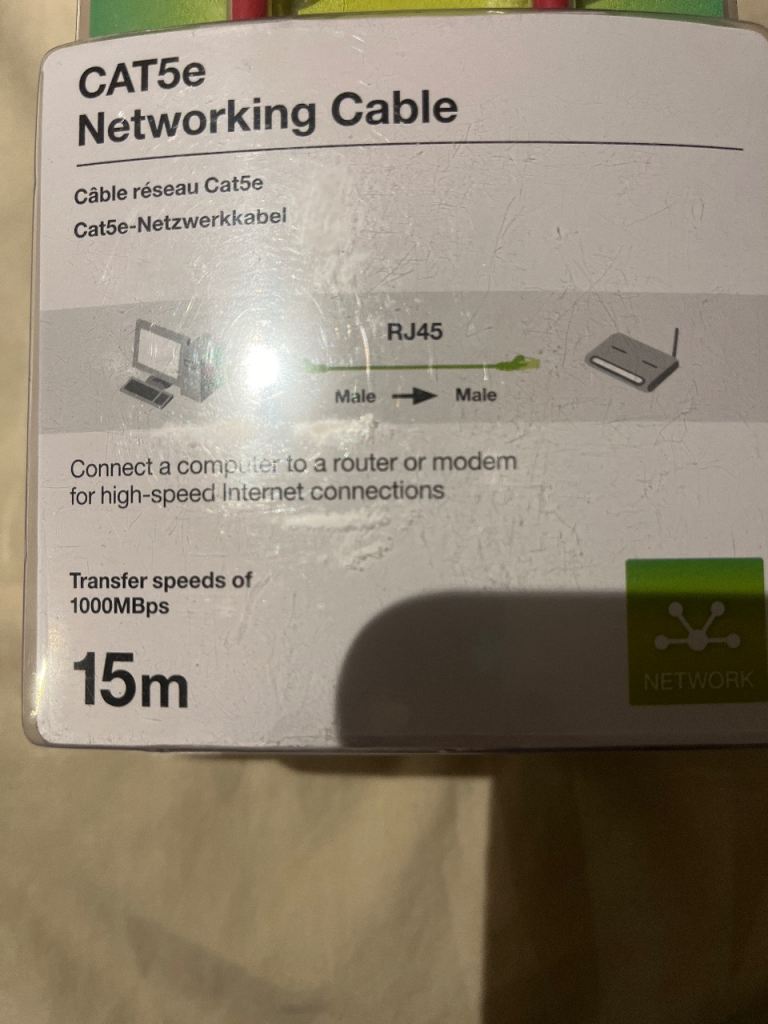 Brand new in sealed box, Belkin 15m CAT5e networking cable.