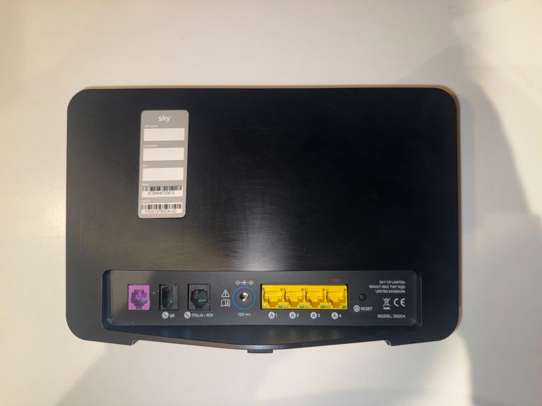 Sky SR204 Broadband Hub (Sky Q Router 4.2) in full working condition. This is a dual-band router designed for Sky fibre and G.fast broadband connections.