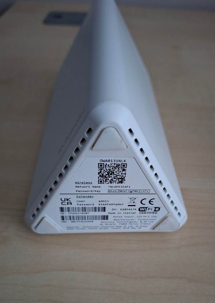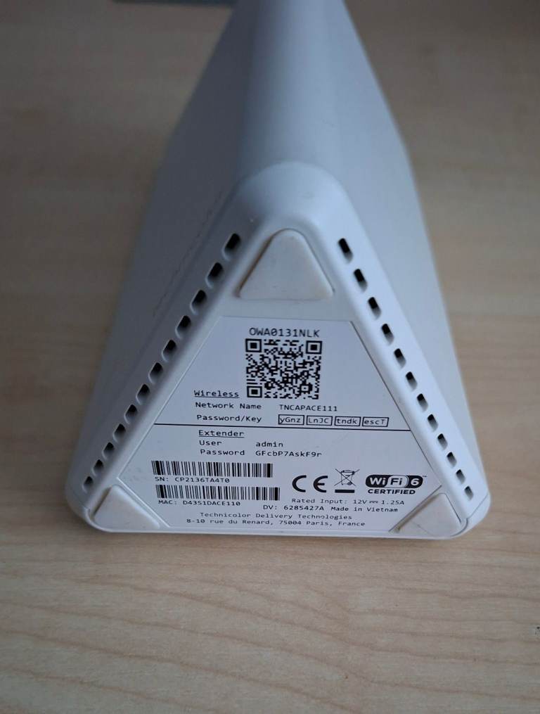 Technicolor OWA0131 dual-band Wi-Fi 6 mesh extender (used on Trooli and other Internet providers)