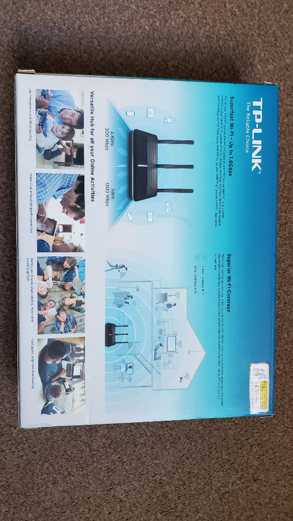 Black high speed dual band TP Link router. Excellent condition with box manual and accessories. 2x USB ports for home servers/storage, 3g/4g connection. VDSL/ADSL/Fiber/Cable compatible