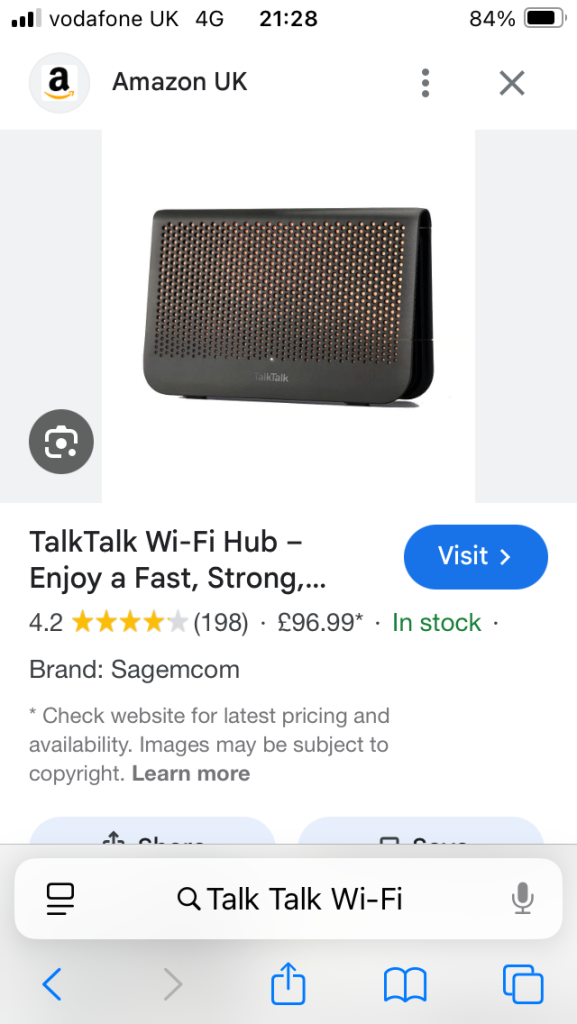 Wi-wfi hub talk talk brand new can deliver for a small charge