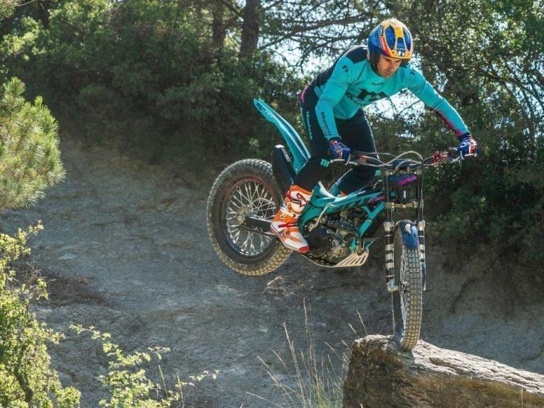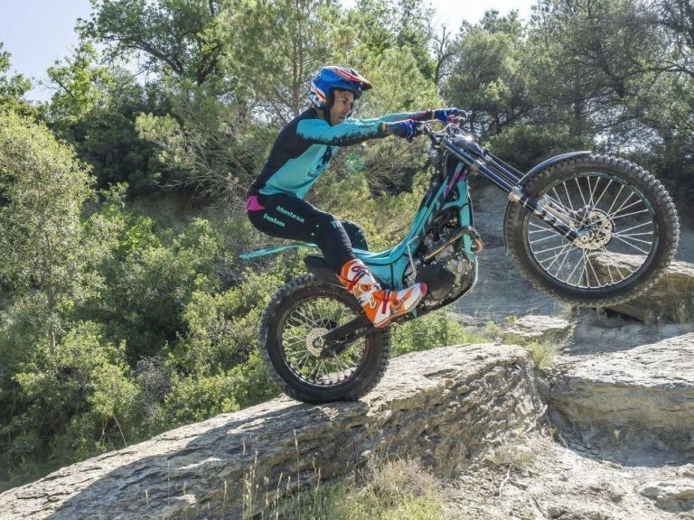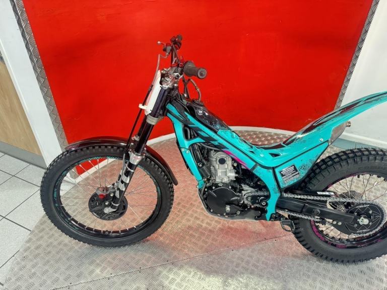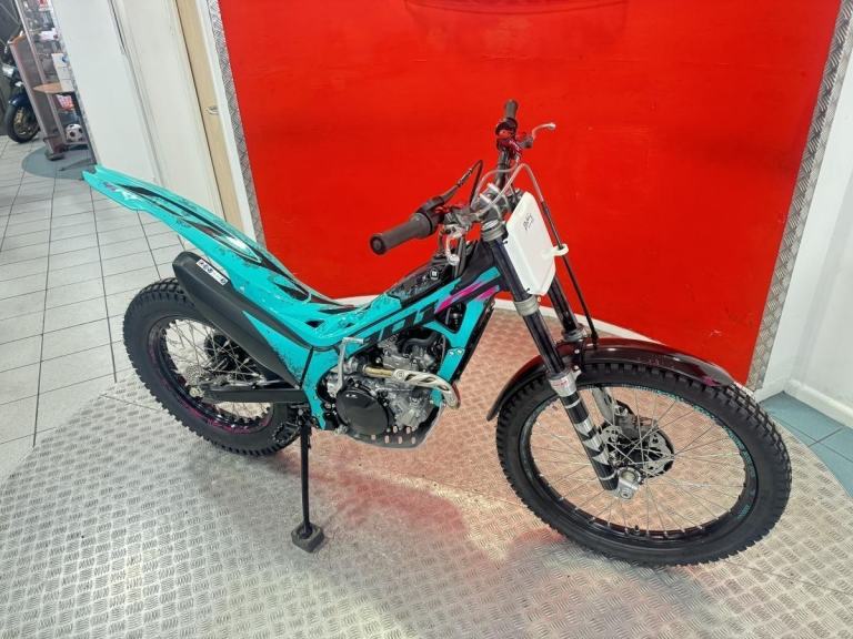 The model continues to deliver competition-level performance, thanks to its powerful 298cc engine derived from the Trial2 World Championship bike. It features high-end components such as a machined fork triple clamp, aluminium frame and muffler, high-performance wave brakes, and carbon fibre protectors.