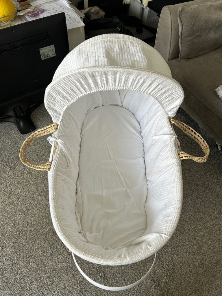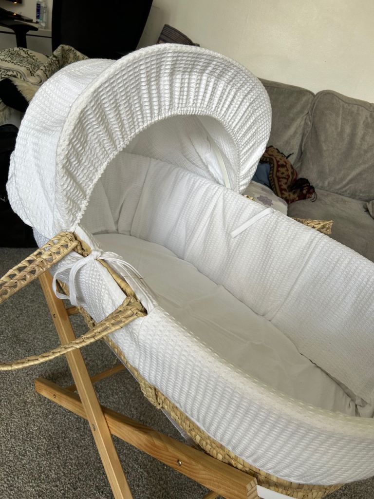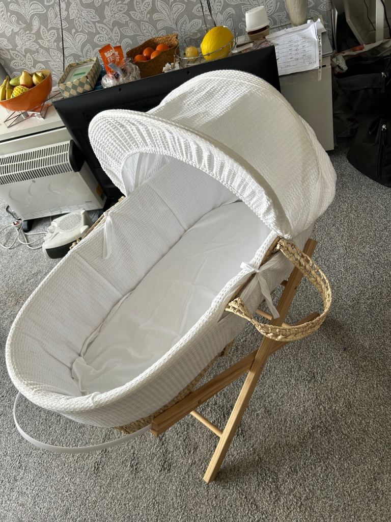 Baby Moses basket. Has a piece of wood string hanging out from the stand but doesn't affect the stability of the basket. Please message before buying.