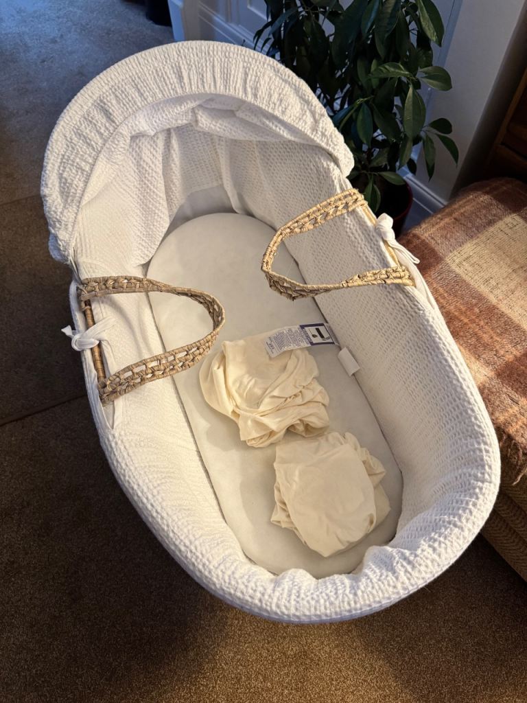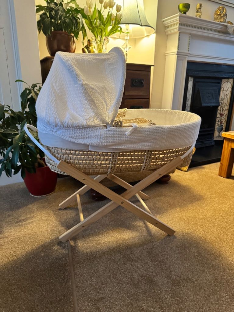 Posting for 16+ yearsKeller Valley Moses Basket with stand, mattress and 2x fitted sheets