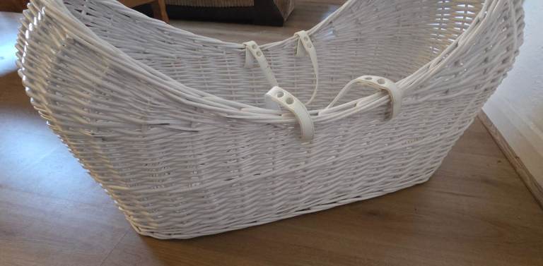 White wicker crib