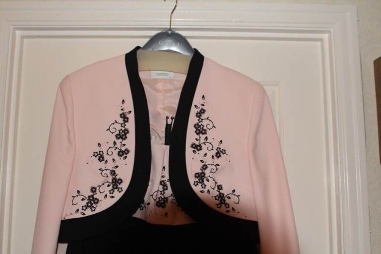Beautiful mother of the bride dress/jacket by CONDICI. Worn once only and in 'as new' condition with absolutely no marks and in it's own cover. The dark images are only shadows during the photography. Size 16. Cost over £800 new.