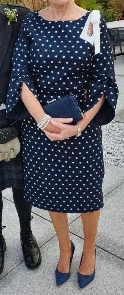 Detail on sleeve and shoulder. Attractive fabric with a slight sparkle. Only worn once.