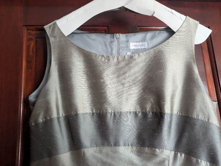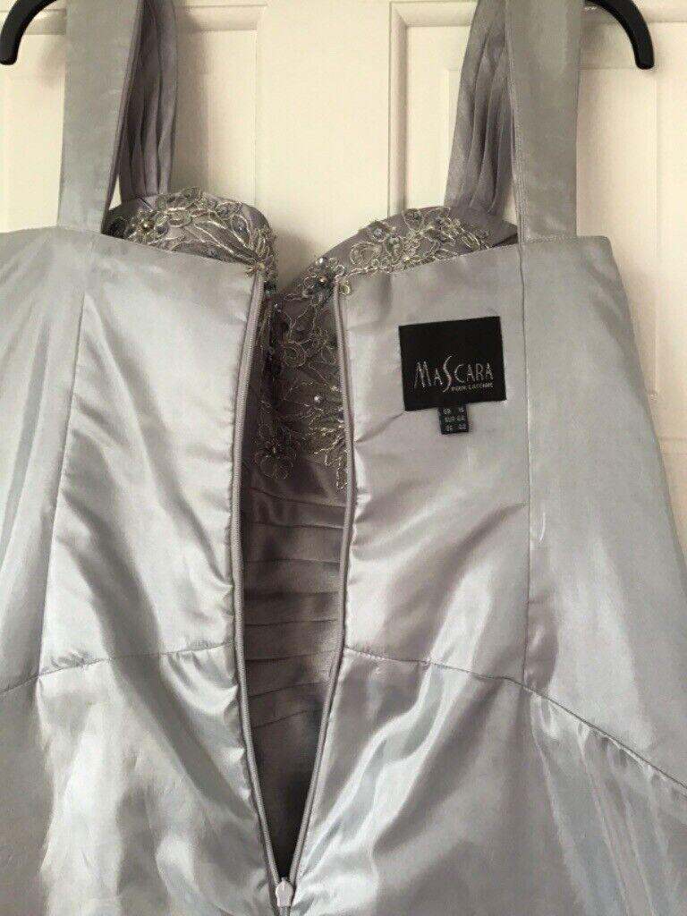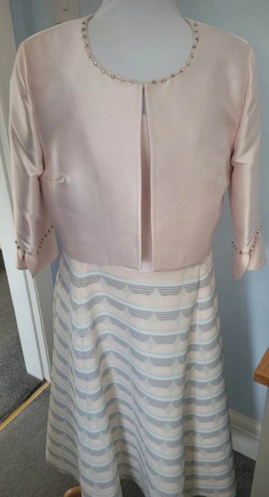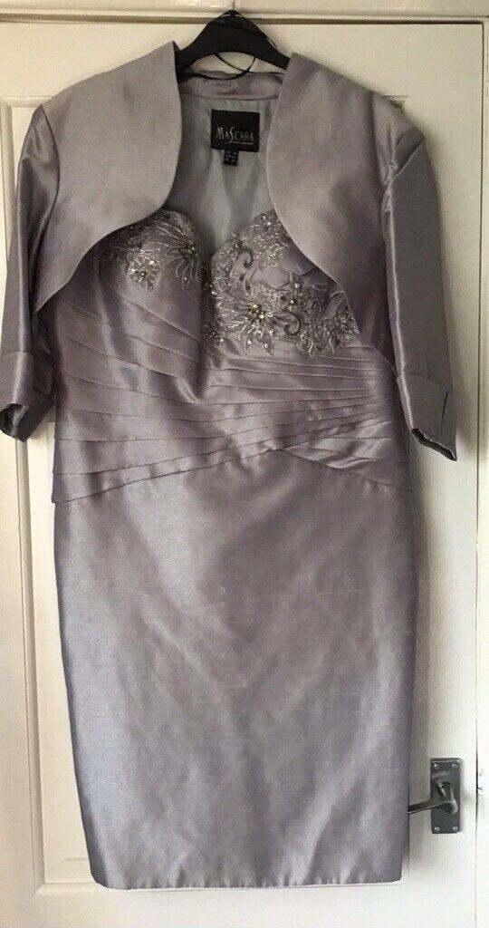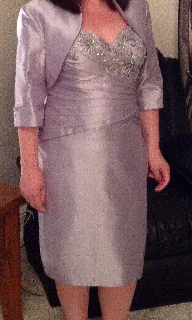 Bought from Marianne’s of Cleadon. Flattering sweetheart neckline with embellishment crystal design over bustline. Fully lined with built-in bra support. Small size 16. Silvery lilac shot silk effect fabric with knee length pencil length skirt. Matching 3/4 sleeve bolero jacket. Cleaned & from smoke-free home. Worn once for a few hours. Viewing available & collection from Morpeth area. £80
