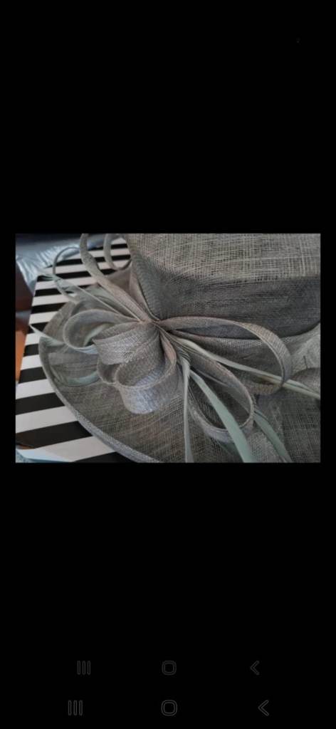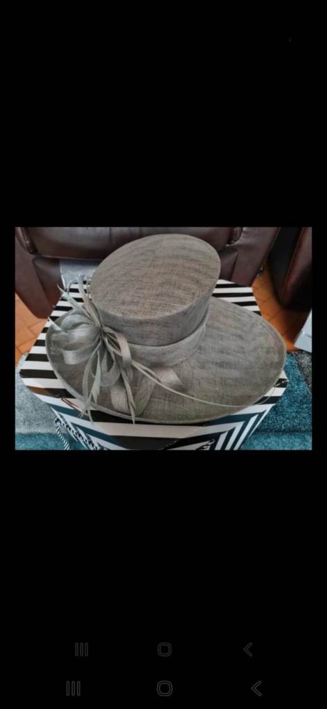 The hat by Max & Ellie is silver grey with mint green feathers and has an adjustable fitting inside the brim.