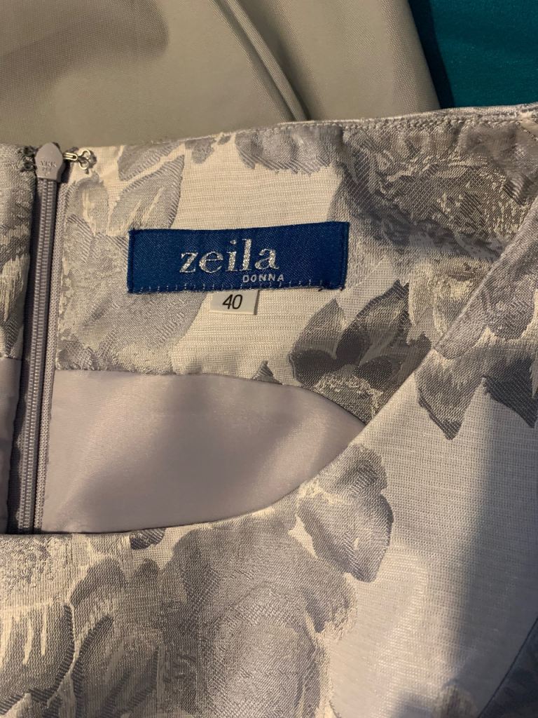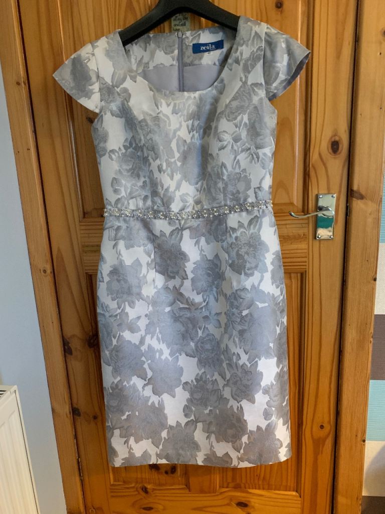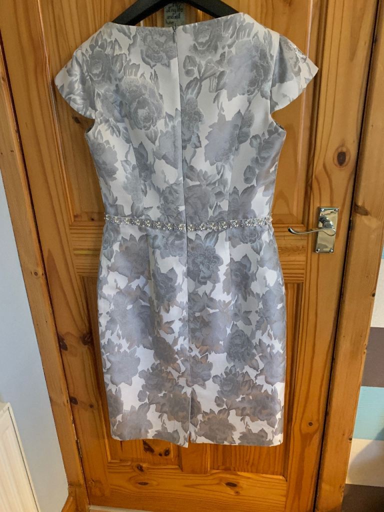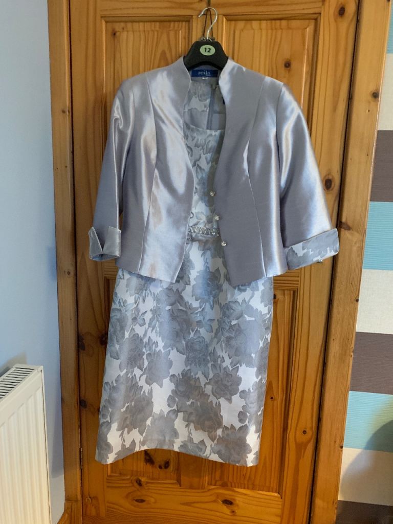 Stunning silver and mauve dress with matching jacket, beautifully tailored and incredibly flattering. Features delicate pearl detailing that adds a touch of luxury without being overpowering.
