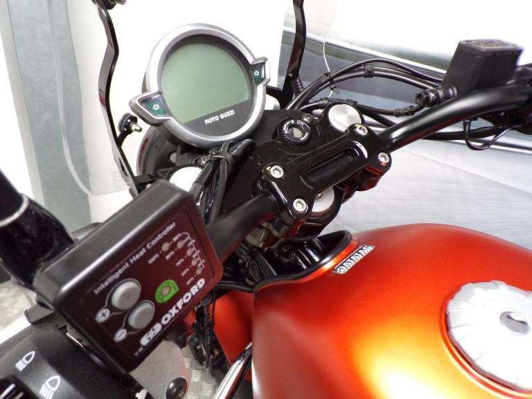 THIS EXAMPLE HAS ONLY COVERED 5688 MILES FROM NEW. IT IS ALSO A 1 OWNER BIKE FROM NEW, AND FANTASTIC SERVICE RECORDS, ALL DONE THROUGH OUR OWN MOTO GUZZI WORKSHOP. GIVI SCREEN FITTED ALONG WITH THE PANNIERS AND TOP BOX. CRASH BARS, HEATED GRIPS, AND A FRONT FENDER EXTENDER.