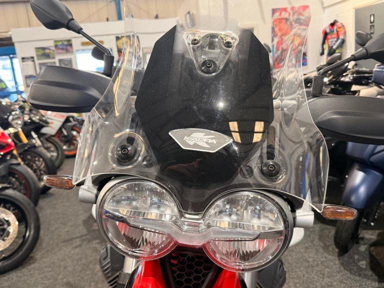 Just arrived in @ Powerslide Derby is this lovely example of the Moto Guzzi V85 TT. This one owner bike has been maintained to a high standard. The Moto Guzzi V85 TT Travel is the perfect companion for riders who crave freedom without compromising on comfort or style. Blending authentic Italian character with modern touring capability, this adventure-ready machine pairs its charismatic transverse V-twin engine with long-distance comfort, upright ergonomics and premium touring equipment as standard. Designed for those who want to escape the everyday, it features advanced rider aids, generous luggage capacity and refined suspension that makes everything from weekday commutes to cross-continental adventures effortless. With its distinctive Moto Guzzi heritage, rugged good looks and smooth, confident performance, the V85 TT Travel isn't just a motorcycle - it' an invitation to explore further, stay out longer and arrive in style.