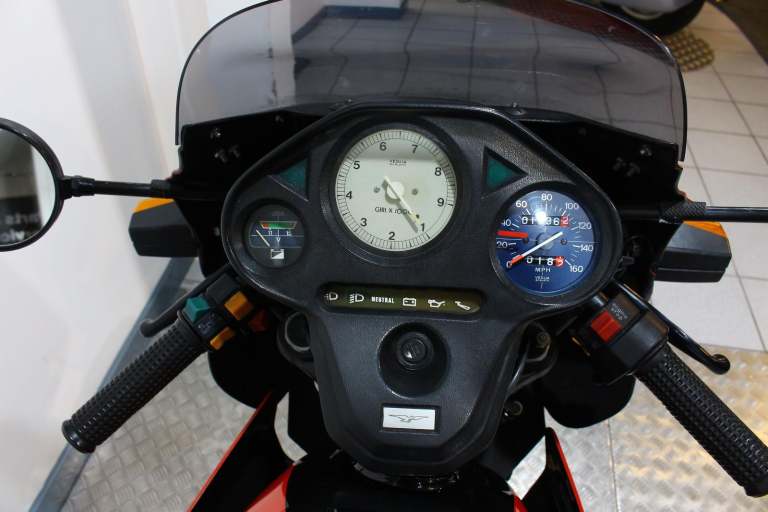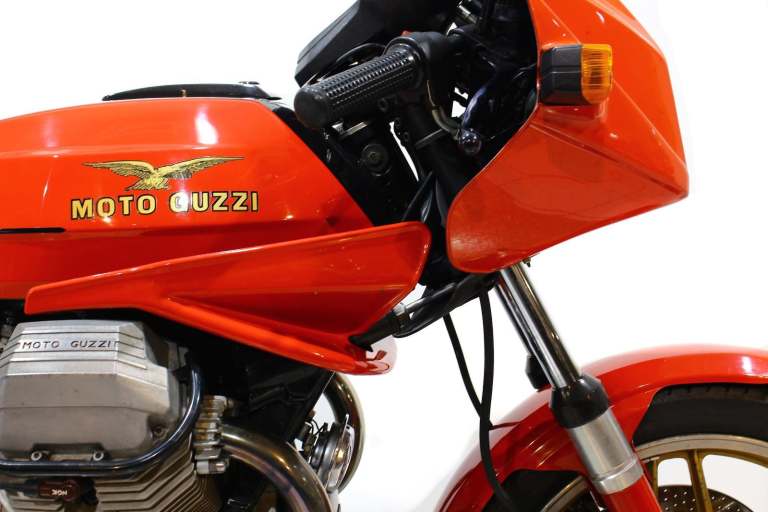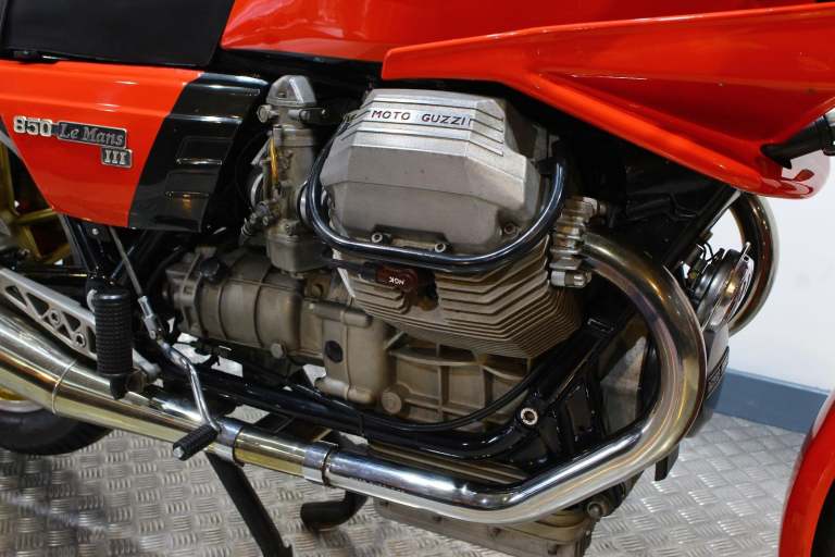 1985 Moto Guzzi Le Mans in red Date of registration 09/04/1985. Comes with handbook and 2 keys. original speedo showing 7335 miles. New speedo 1836.