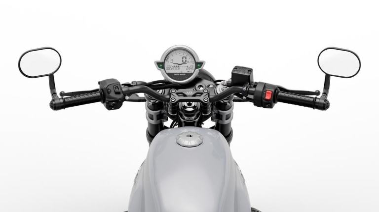 Other traditional V7 features remain such as the large 21l fuel tank and and shaft drive ensuring this bike is as well suited for touring as it is for commuiting and ensuring low running costs and easy maintenence.