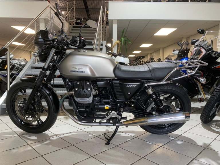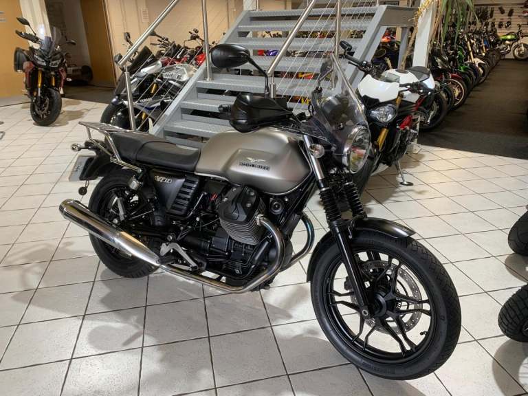 Moto Guzzi V7 Stone 2016 66 Reg, One former owner with Only 5,884 miles, 2 Key's, Fitted with rear rack, Fly screen, Hand guards, Heated Grips, Excellent Example. Viewing by Appointment only please call or email to arrange 01332 296669 / [Email address removed. Click Email button to contact us.] Warranty, Finance and part exchange available, Delivery to your door, Cars or Motorcycles taken in P/X, All makes and models of motorcycles bought. EMS serving Derby, Nottingham and Leicester. Price excludes Doc Fee of £79