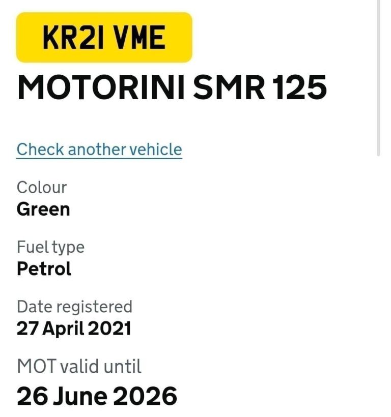 Motorini smr 125 2021 low mileage only 347 miles on the clock. Just had a service.