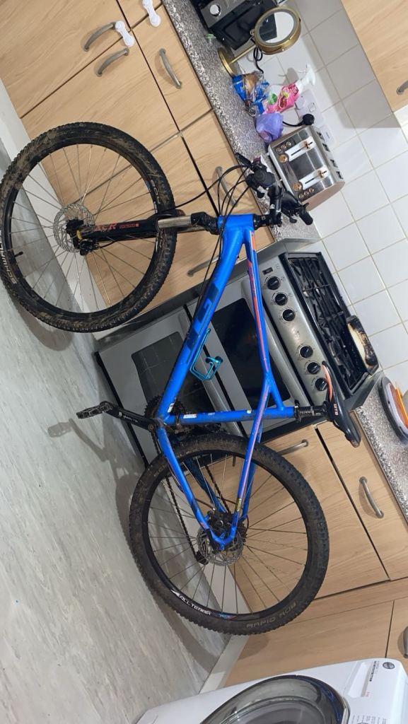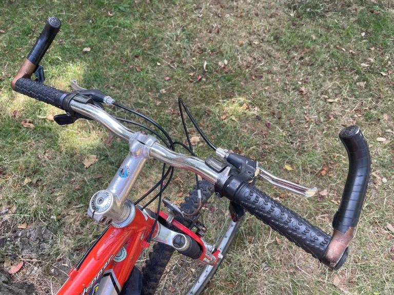 The gears are a little faulty, 26" wheels, medium bike frame, the vertical handles can be removed.