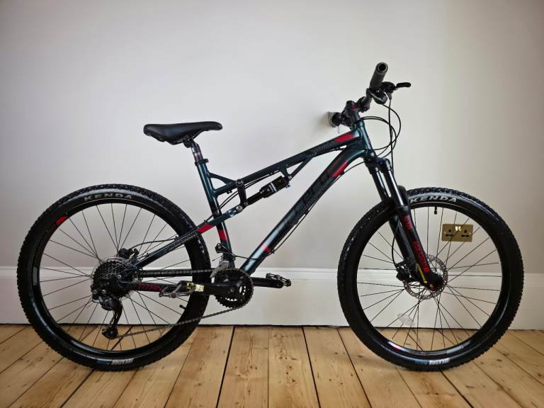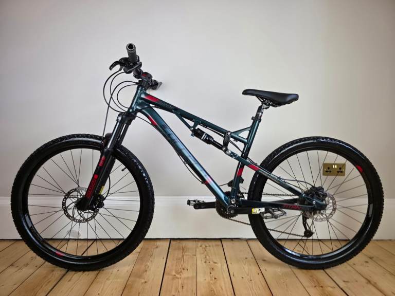 Carrera Titan X full suspension mountain bike in a large sized frame. The bike is in excellent condition and ready to ride away. Finished in a lovely dark green colour.