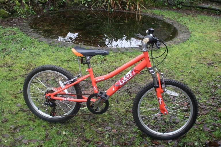 KRAZE EXTREME , unisex mountain bike ,colour ,orange/white trim ,6 speed, twistgrip gear change ,20 inch silver alloy wheels ,11 inch frame size ,sprung front forks , nice bike .