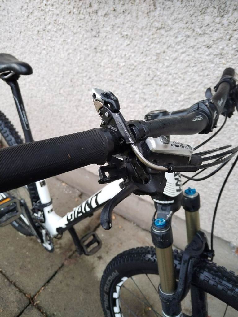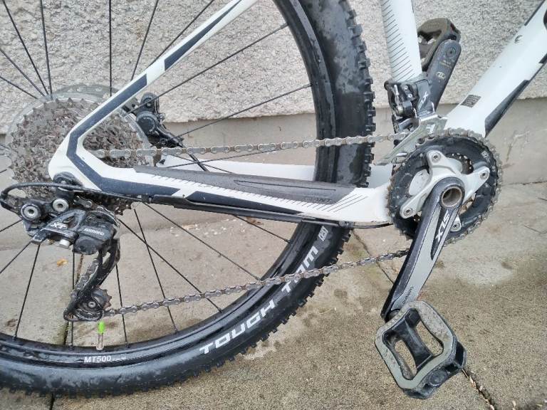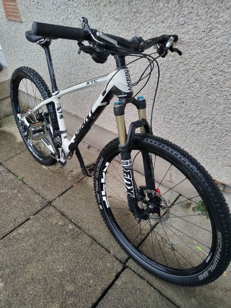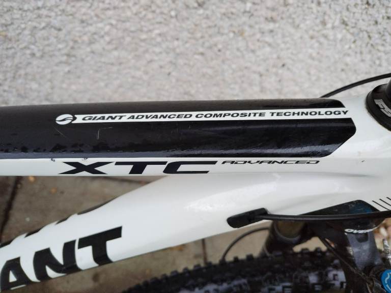 Very well loved and equally well maintained Giant XTC Advanced high spec MTB (2016) for sale. White carbon frame (Small, see sizing chart) with stylish black decals and a few superficial reminders of some memorable rides. Fox Evolution front suspension fork with 3-position handlebar remote switch. Shimano Deore 2x10 drivetrain (SLX chainset and front mech, XT rear mech). Shimano Deore disc brakes. Specialized Body Geometry saddle. New bottom bracket fitted 2024. New Shimano 27.5" MT500 wheelset fitted 2025, along with wheel-specific Schwalbe tyres (rear - Tough Tom, front - Racing Ralph). Bike fully serviced and new chain fitted after last ride. Bike upgrade and one-in, one-out garage policy force reluctant sale. Well worth a look and a test ride. Any reasonable offer would be considered.
