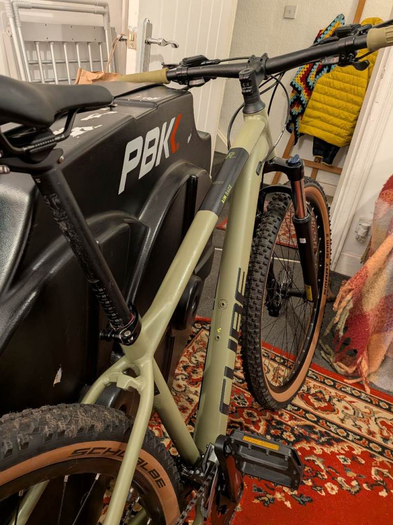 CUBE Aim Race Mountain Bike 2023 M - 29 WHEEL olive/black- practically brand new, one outing less than a mile along canal. PERFECT condition. Slight scratching to the seat post as pictured. No signs of wear and tear as been sat in storage for the past two years!