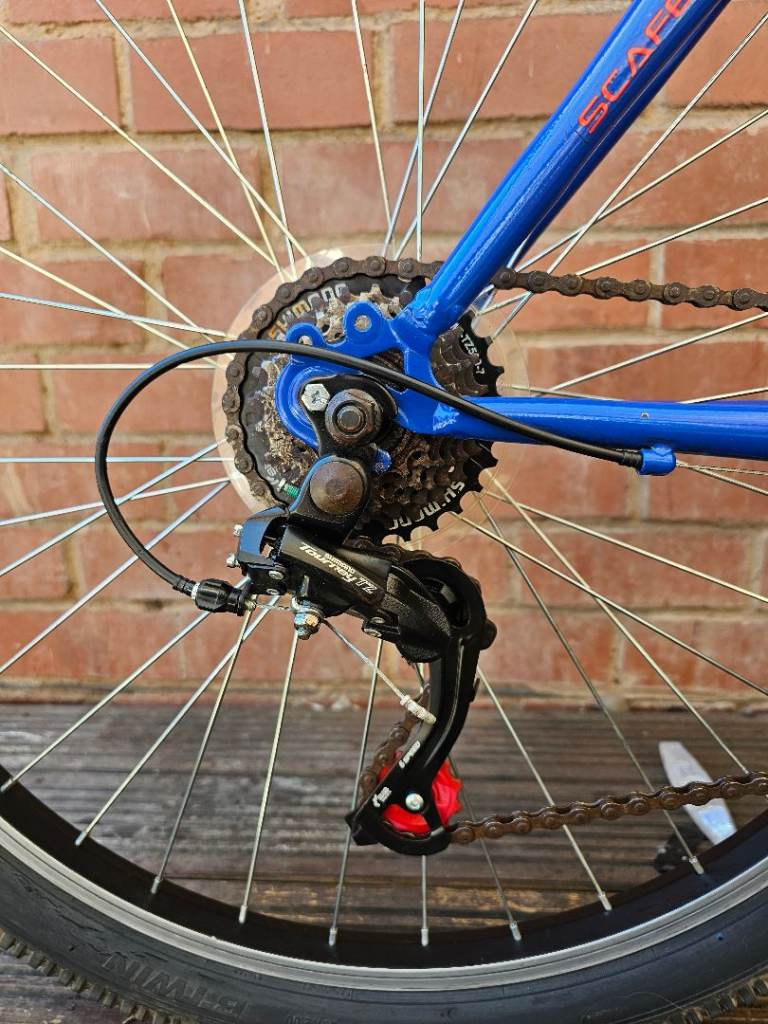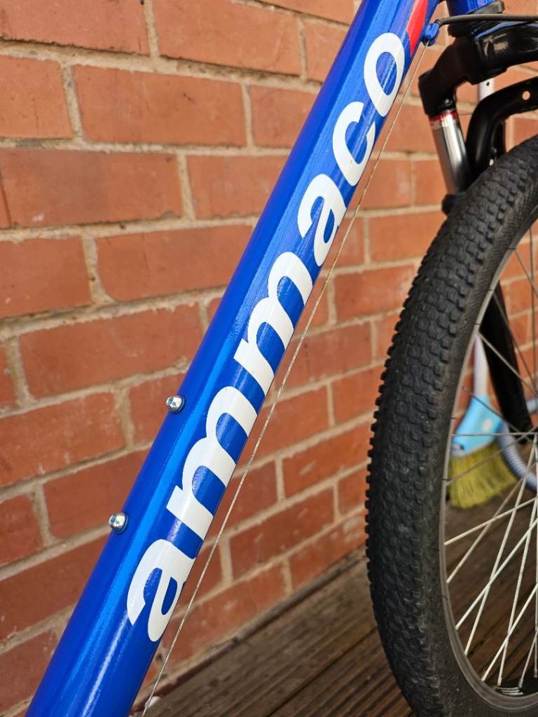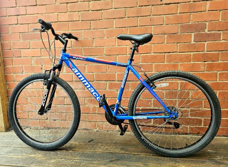 Well-maintained Ammaco mountain bike with Shimano gears and front suspension for a smooth ride. Brakes and gears change smoothly, tyres has a very good thread overall a solid reliable Bike.